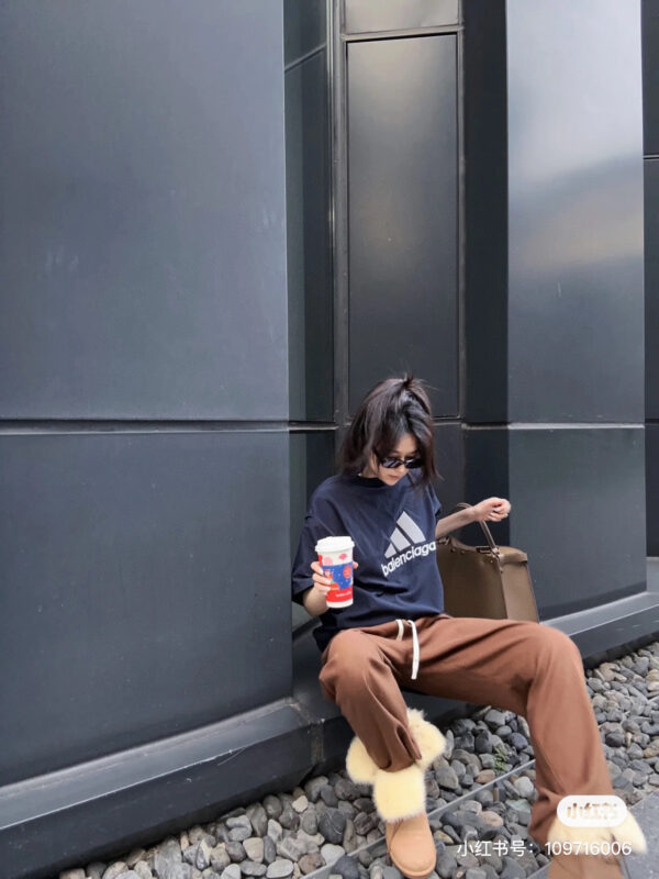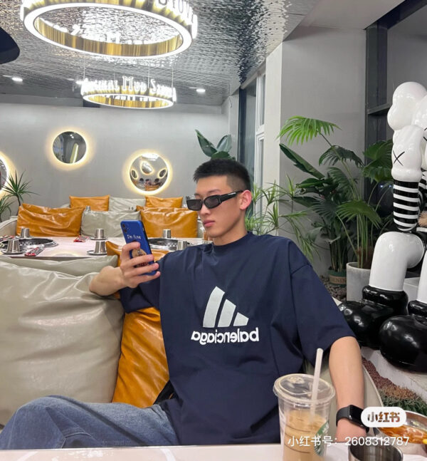【 Top Version. Official Website Quality 】 BLCG/ALENCIAGA/Balenciaga Joint Adidas Classic Logo Combination in Front, Embroidered Short Sleeve T-shirt with Double sided Front and Back Wear