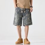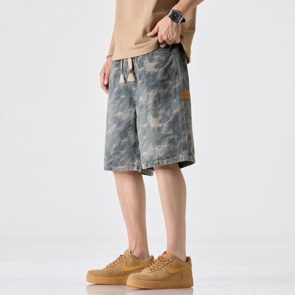 1311# Camouflage denim shorts for men, elastic waist, loose fit, summer thin design