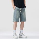 1319# Tencel denim shorts men’s elastic waist stretch five quarter pants
