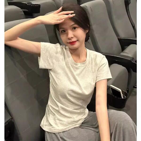 20118-22025 (92 cotton/8 spandex) 40 count 210g pure cotton summer t-shirt for women, front shoulder short sleeved