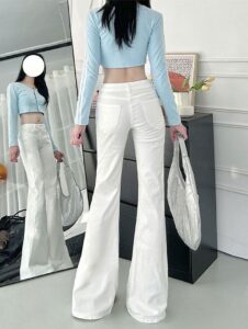 H106High waisted slim fit white jeans women’s American versatile plus size stretch fat mm straight leg horseshoe slightly flared pants