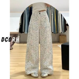 M764-1Fun graffiti design casual pants for women’s spring and summer excitement, new lazy and relaxed feeling, straight tube hanging feeling, floor dragging wide leg pants